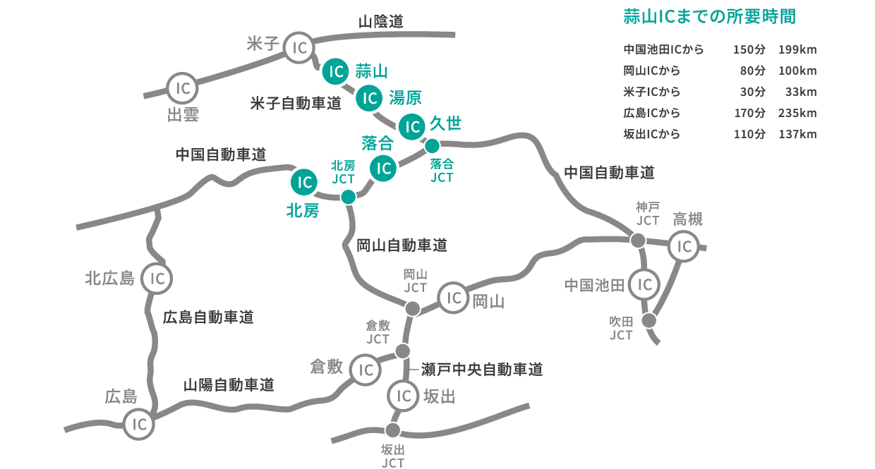 蒜山ICまで 60分 約50km