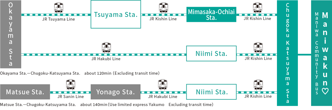 | Maniwa Community Bus “Maniwakun♡” | Citizen Division of Maniwa City Citizen Environment Department | TEL.+81-867-42-1017 |