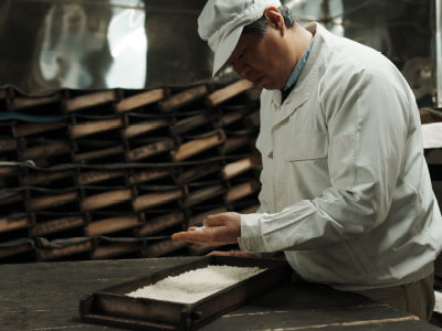 The koji mold made using traditional methods unchanged since the founding of the brewery has a strong umami taste and is soft and easy to dissolve with a crisp finish. New techniques are added to the techniques that have been passed down from generation to generation to produce this koji mold. Without good koji mold, secondary products won’t be good either. That’s why the base koji mold is the most important raw material, and it is made without cutting corners, sparing no time or effort.