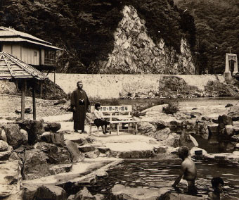 湯原温泉露天風呂「砂噴き湯」湯浴み口上