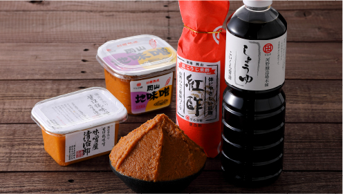 130年以上途切れたことのない地下水から育まれた、伝統的な発酵調味料である「酢・味噌・醤油」。蔵付き酵母とむかしながらの手仕事を通じて、真庭の郷土料理だけではなく、現在にも受け継がれ、真庭の食文化すべての支えになっている。