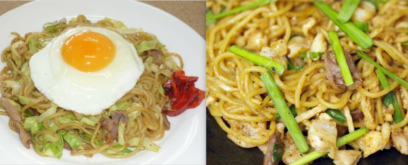 ひるぜん焼そばに、横手やきそばの特徴でもある目玉焼きを豪快にトッピング。