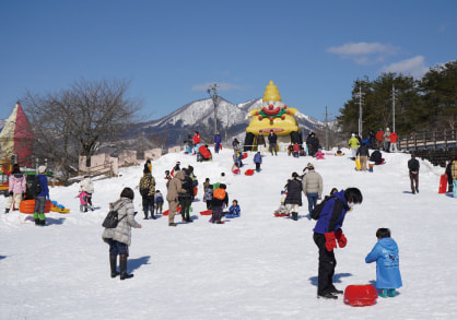 会場内に広がるまっしろな雪広場で雪遊びを楽しもう!ソリの貸し出しもあります。