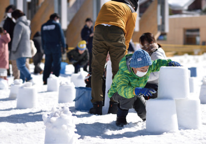 会場内で自分だけのミニかまくらを作ろう!夜には「かまくらキャンドル」として灯りがともります。