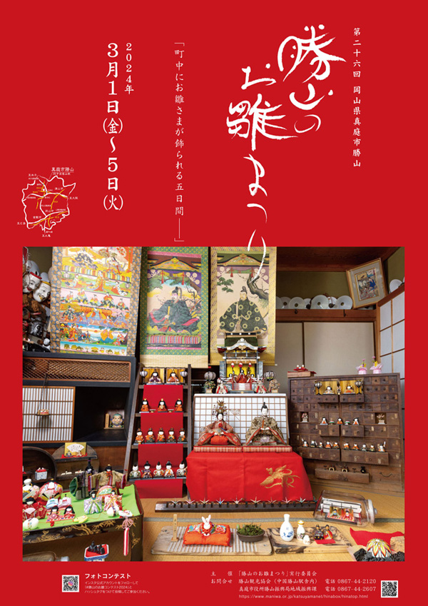 古民具とお雛さま 中央図書館の隣にある城内観光駐車場に入ると、中西さんの自宅に飾られたお雛さまに出会えます。玄関先には干支をモチーフにした竹の作品が目を引きます。扉を開けた和室は、中西さんのユーモアあふれるセンスで見事に調和された空間づくりがされていて、昔家で使われていたお道具とお雛さまが置かれています。 「お雛まつりが始まった最初の頃は、家にあった段飾りのお雛さまを出していたのですが、何年か経ってちょっと変わったことをしたいなと思って、趣味で集めた骨董品などを利用してみたら、訪れた人から評判となり、それ以来毎年工夫しています。」と中西さんは話されています。いろいろなところに面白いものを発見できますので、細かな箇所をゆっくりご覧ください。 |