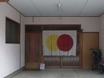This noren features two bright circles. The creation of this design was entrusted to Yoko Kano, the