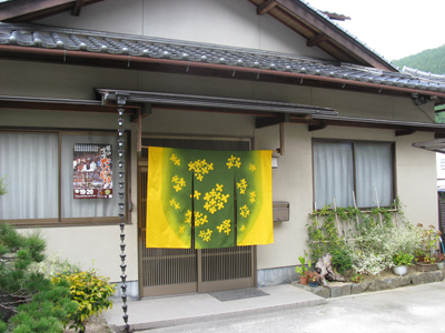 fragrant olive blooms is in the air, the hearts of local children are alive with the excitement of the town's festivals. To match this season, the house is decorated with a noren that features these flowers. The flowers on this noren also resemble nanohana blossoms, so it makes an appearance in springtime as well. They enjoy matching their noren with the changing seasons. It's always a treat to see what flower is blooming on this house's noren! |
