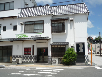 This printing company has been in business for 120 years. When they first began, workers had to set type by hand. The business of printing has undergone many changes since then. This noren was chosen by Mrs. Tomioka while on it was display at the Hinoki Kusaki Dying and Weaving Gallery. It waves over ascending stairs. Every year, migrating swallows build their nests on this building. The design resembles a giant eyeball and they hoped it would frighten the birds away, but they have had no luck so far. |