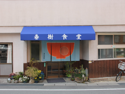 This local dining spot serves yakisoba and other dishes. Their current noren's red circles express the warm atmosphere and hospitality the owner wants to offer his customers. Their first noren features a cool-color scheme, and is only hung in spring and summer. The noren with red circles is shown during fall, winter and the Hina Doll Festival. Haruki Shokudo (Haruki Eatery) is written in big characters above the noren, but the eatery's name also appears in smaller characters on the lower-left section of the noren, so anyone who takes its picture will know who it belongs to. |