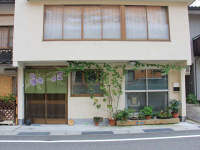 wear, such as kimono worn during the Shichi-go-san Festival. Their second noren features Mrs. Maeoka's favorite flower, the iris, the petals of which were created by a gradual dyeing process.