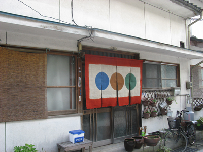 Festival. This is their fourth noren. Another noren is patterned after the stone wall that runs the length of the Asahi River in Katsuyama. Sixteen years have passed since the noren first began to wave in this town. |