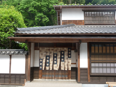 The house's fifth noren has an image of the rising moon. The special hemp cloth is difficult to dye with anything besides indigo blue. Since many of the noren in the neighborhood have indigo blue in them, they used the dye sparingly and the original color of the fabric shows in many places.