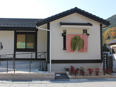 Because this clinic belongs to the Kame-no-ko-kai (which is literally translated as "gathering of young turtles") Medical Corporation, a turtle and crane in a circle were used in their noren. Turtles and cranes are symbols of longevity in Japan. The turtle has a stethoscope to help express that the building is a clinic. They used a light greenish-brown in the circle and a background of salmon pink so it will be easy to see the tie-dyed lines of the turtle and crane. |