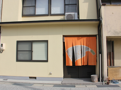 The Tsuji family's house was formerly a shop where craftsmen would sharpen dull saws. This craft is called metate in Japanese. They wanted to base their noren's design on a treasured family heirloom: a saw that was made by an ancestor who used to be one of these metate craftsmen. A special dyeing technique was used to make it look like a real saw with rust on the blade. This time, their noren's design remained the same but the background color was changed. |