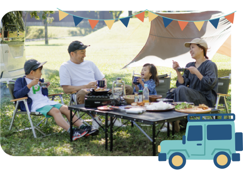 大阪、神戸の関西圏から、約150km(※1)。キャンプや屋外遊具をはじめとする、自然の魅力を体感するアクティビティのほか、グルメやイベントなど都市部とは一味違った夏を満喫することができます。
