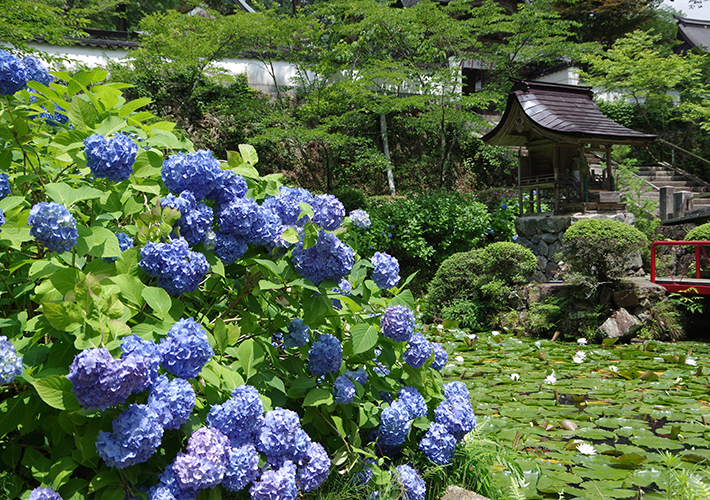 Enjoy these stunning flowers in June as they bloom across both temples’ grounds in blue, white and pinks.