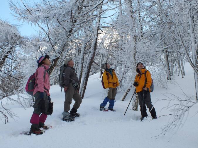 スノーシューを履いて広大な蒜山の雪原や野山を探検します。