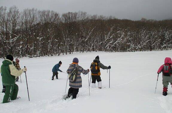 雪の中に出かけて林の中の丘を上ったり、滑ったりとスノーシューを履いて雪を楽しみましょう♪