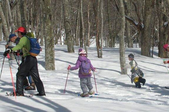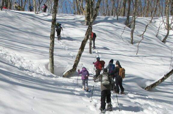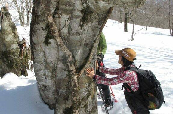 ブナ林の中を歩き、希望の方は尻セードも楽しめます。