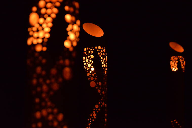 地域内の竹林を整備した際の竹を活用し、竹灯篭を作成。
