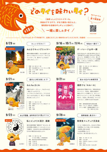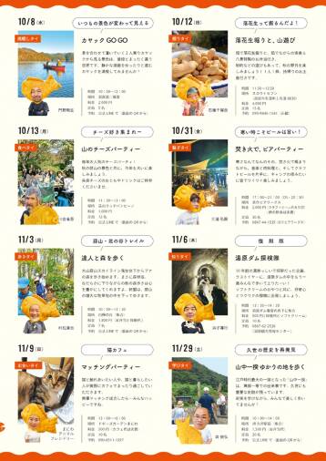●湯原っしいとは自分の好きを活かしたイベントを企画して実行しタイ人、みんなとわちゃわちゃ交流して楽しみタイ人、そんな、人、人をつなぐプログラムが「湯原っしい」!●実施期間
