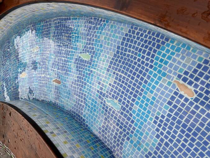 はんざき足湯には、四角いタイルに混じってハートのタイルがあるんです!