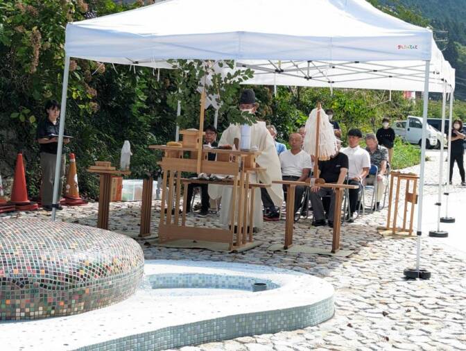 はんざき足湯は、地元の小中学校や地域のみんなが協力して作り上げました。