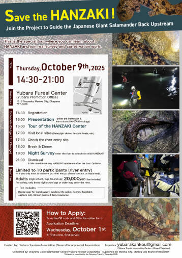 Yubara Onsen wants participants for the Japanese Giant Salamander conservation project!!