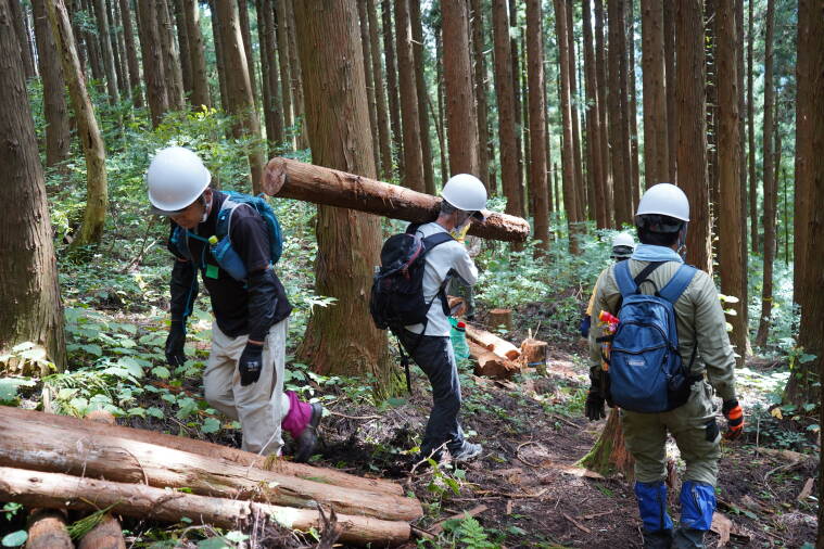 説明のあとは現場にある枯木の伐採や運搬を行います。なんと、今回はここで時間が終わってしまいました!