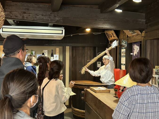 創業200年以上の酒蔵、御前酒蔵元辻本店で、県内初の女性杜氏 辻 麻衣子さんが酒蔵を案内。