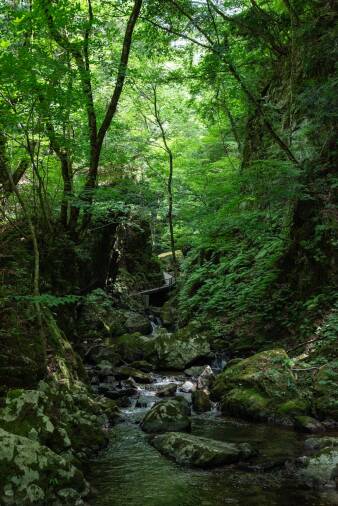 涼水亭さんから川上へと歩いて行くと、すぐにジブリ映画の「もののけ姫」に出てきそうな雰囲気!