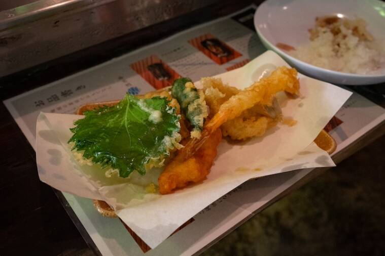 ...なかなかに早い。でも、取り逃がしたそうめんはテーブル下のパイプを通って調理場へ。取れるまで流してくれます(笑)一緒に頼んだ天ぷらは揚げたてでそうめんのつゆとも相性抜群!そうめんももちろん美味しかったです!