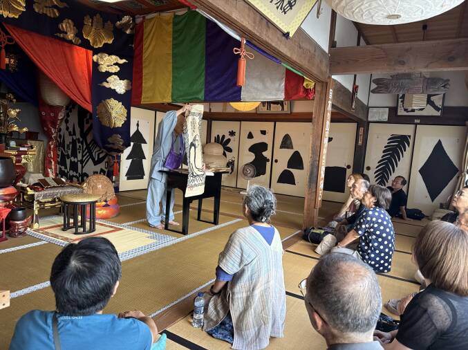 版画作成を始めた経緯のお話しをお伺いした後、お寺の中を見学!