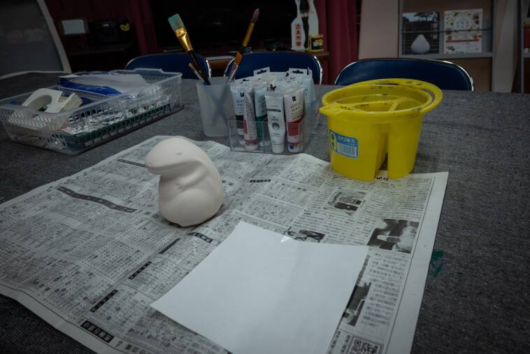体験料1,000円を窓口で支払うと、奥にある体験スペースで絵付けスタート!