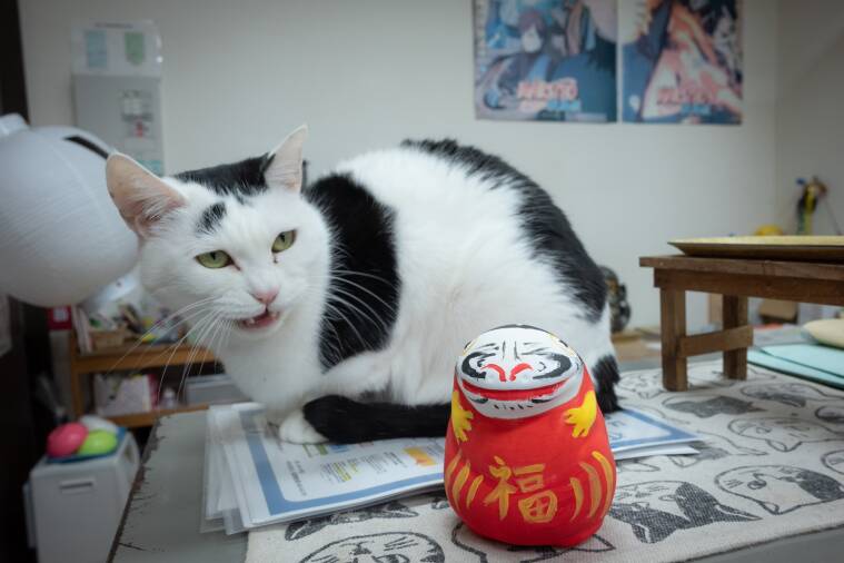 ちなみに一緒に写っているのは、温泉ミュージアムの住猫の1匹「まろ」。