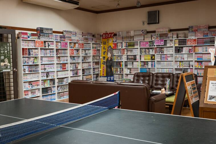 今回「はんざきだるまの絵付け体験」をさせていただいた温泉ミュージアムは1階が観光案内所+お土産売り場+無料休憩所になっており、休憩所には「スリッパ卓球」や「はんざき叩きゲームに加え、なんと古本市場さんもあります。2階には郷土資料館があり、雨の日や町歩きの休憩にぴったりのスポットです☆
