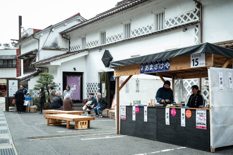 こちらの店先では甘酒や粕汁の販売のほか、なんと無料試飲も!