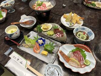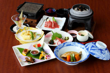 老舗の料亭。勝山の料理を心ゆくまで楽しんでください。※団体可食事施設