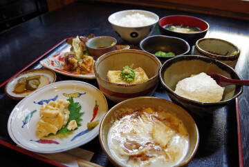 豆腐屋さん直営の小さなお食事処。湯葉と豆腐料理で女性に人気です。出来立ての湯葉はとろりとして上品です。夜は居酒屋となり、地酒とともに豆腐料理が味わえます。ランチの湯葉膳は限定食になりますので、お電話でご予約をおすすめします。岡山県観光連盟 ...