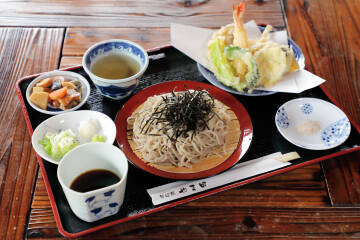 蒜山IC降りてすぐの道の駅「風の家」に隣接。 蒜山で唯一、栽培から収穫後の玄そばの乾燥調整に至るまで、その生産を一括して行なうことなど本格的な地産を徹底。挽きたて、打ちたて、ゆでたての三たてで提供するスタイルで多くのファンを抱える名店です。 地...