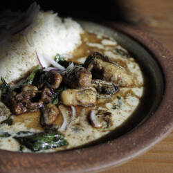 祭りや祝事には必ずといっていいほど登場する蒜山を代表する郷土料理。もち米に鶏肉、油揚げ、椎茸、フキ、ゴボウ、人参、栗などの材料をふんだんに使ったおこわで、醤油味の風味に素材のうまみが上品に調和し、食欲をそそります。蒜山で開催されるイベントや...