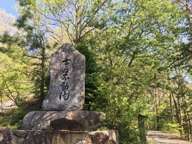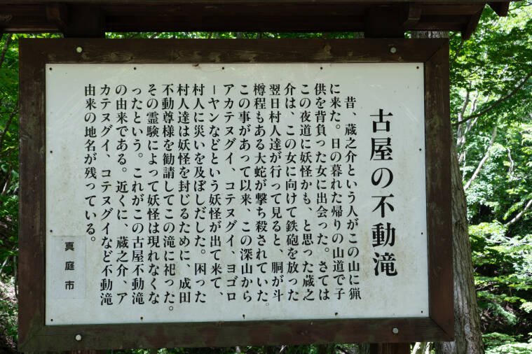 滝口上部には不動明王が彫り込まれ、神秘的な雰囲気が漂う滝です。