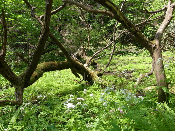 標高954mの櫃ヶ山は湯原富士とも呼ばれる美しい形の山。8合目付近にはブナの原生林があり、多くの植物や野鳥を見ることができます。山頂からの眺望は良く、湯原温泉を見下ろせ、北に蒜山三座、西には星山につながる尾根に続いています。8合目の天狗の森には天狗様が祀られており、伯耆大山の天狗(大山坊)がこの山の天狗(櫻木坊)のところに遊びに来るという伝承もあります。