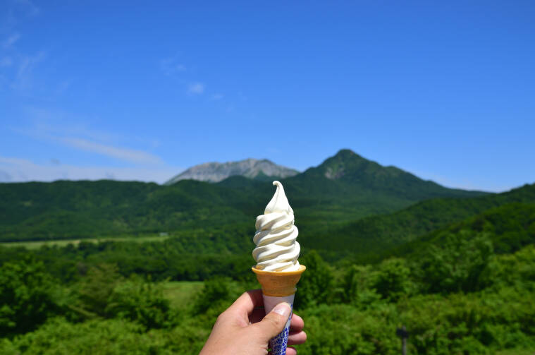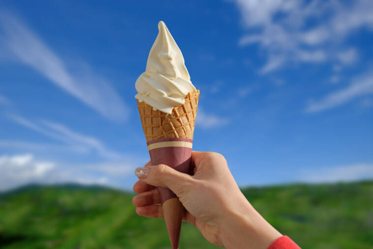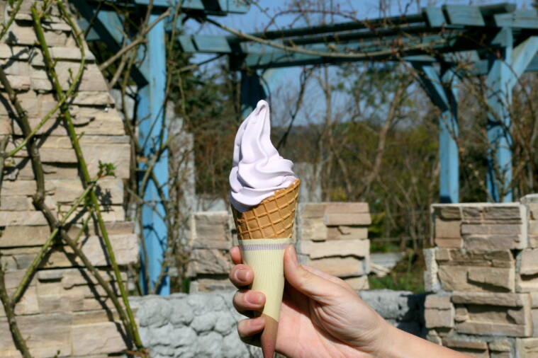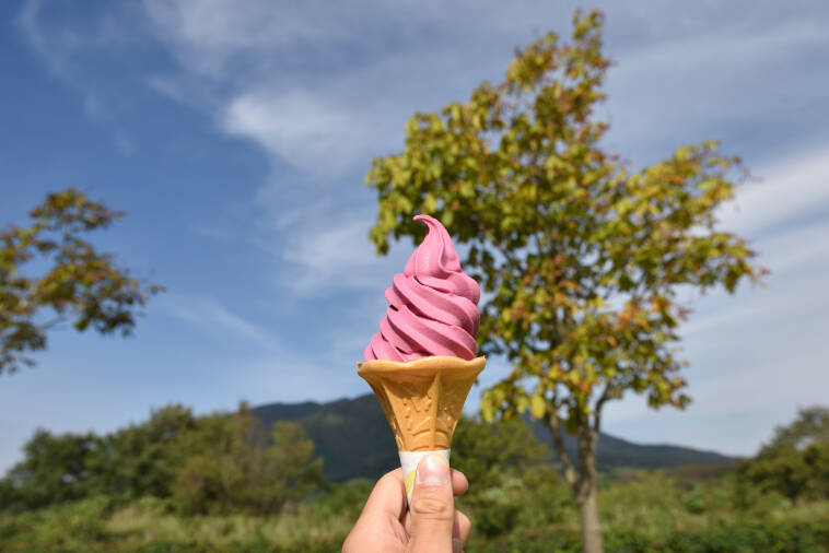 蒜山高原では、ジャージー牛乳を使用したミルクたっぷりの濃厚なソフトクリームをはじめ、「ラベンダーソフトクリーム」や「ヤマブドウソフトクリーム」といったオリジナルのソフトクリームを食べることができます。