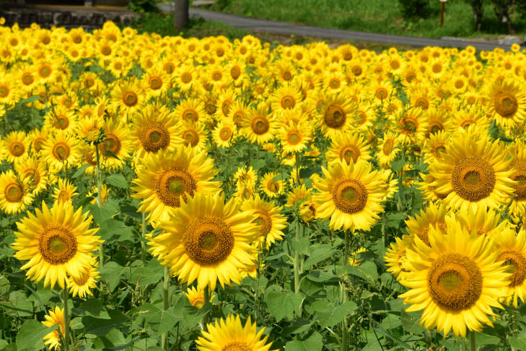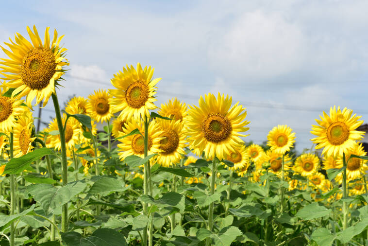 8月には店舗裏の畑にひまわりが咲き誇ります。