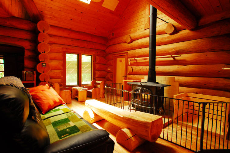 そんなあなたにおススメ!極太丸太に囲まれたログハウスのお宿!!