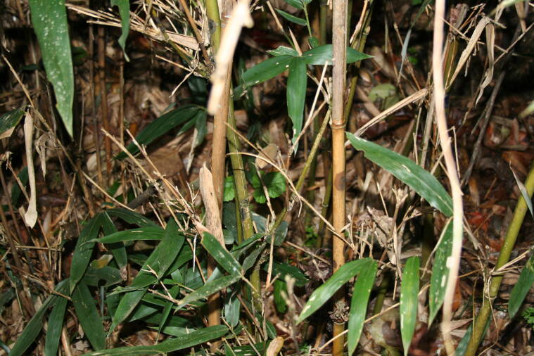 ヤシャダケの細い茎に虎斑菌というカビが付着し、特有の斑紋を現わした竹。この斑紋は黒褐色で、渋味のある上品で優美な味わいのある竹として珍重されてきました。大正13年に国の指定天然記念物となりましたが、菌類が文化財に指定された例はほかにありません。