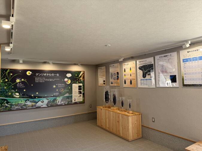 公園内にはホタルの一生を説明した模型や写真の展示もあります。