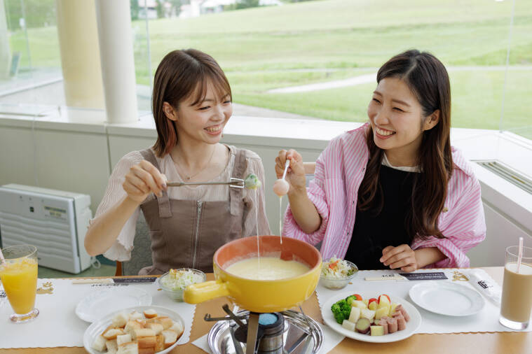 施設内のレストランでは、ジャージーゴーダチーズの濃厚なチーズフォンデュや希少なジャージー牛肉のステーキなどが堪能できます。