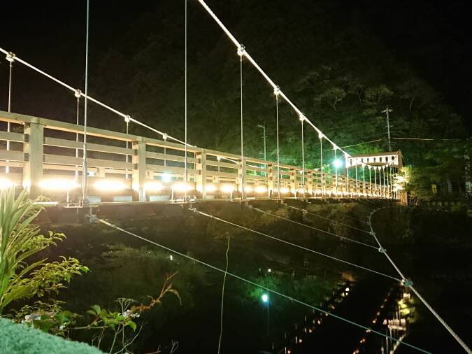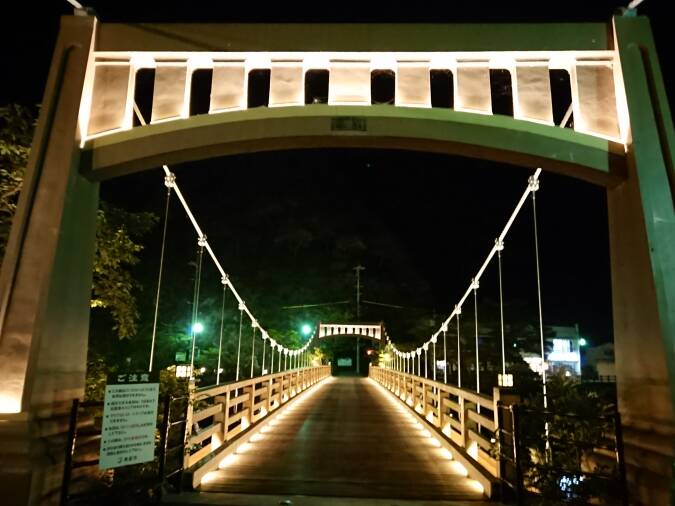 夜はライトアップされ、幻想的に浮かび上がる橋は旭川の水面に映り夜の観光スポットとなっている。